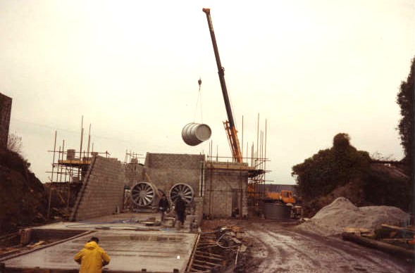 John Hore standing by Cooks sheave wheels (from Treve Lawrance) |