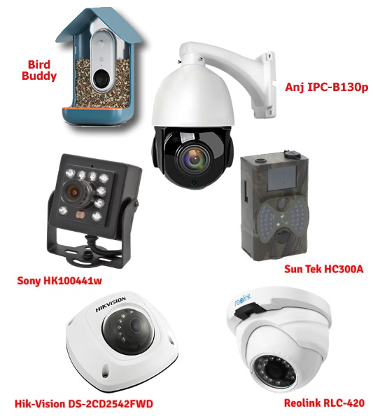 | These are the cameras used in my garden photography. Sony for the nest box in 2017, Sun Tek for site finding, Hik Vision for the nest box ever since 2018, Reolink for the main lawn and hedgehog house. The Anj PTZ cameras for the bird feeder area and bird bath. We also have the BirdBuddy. They are all linked over my network and recorded onto my PC. |